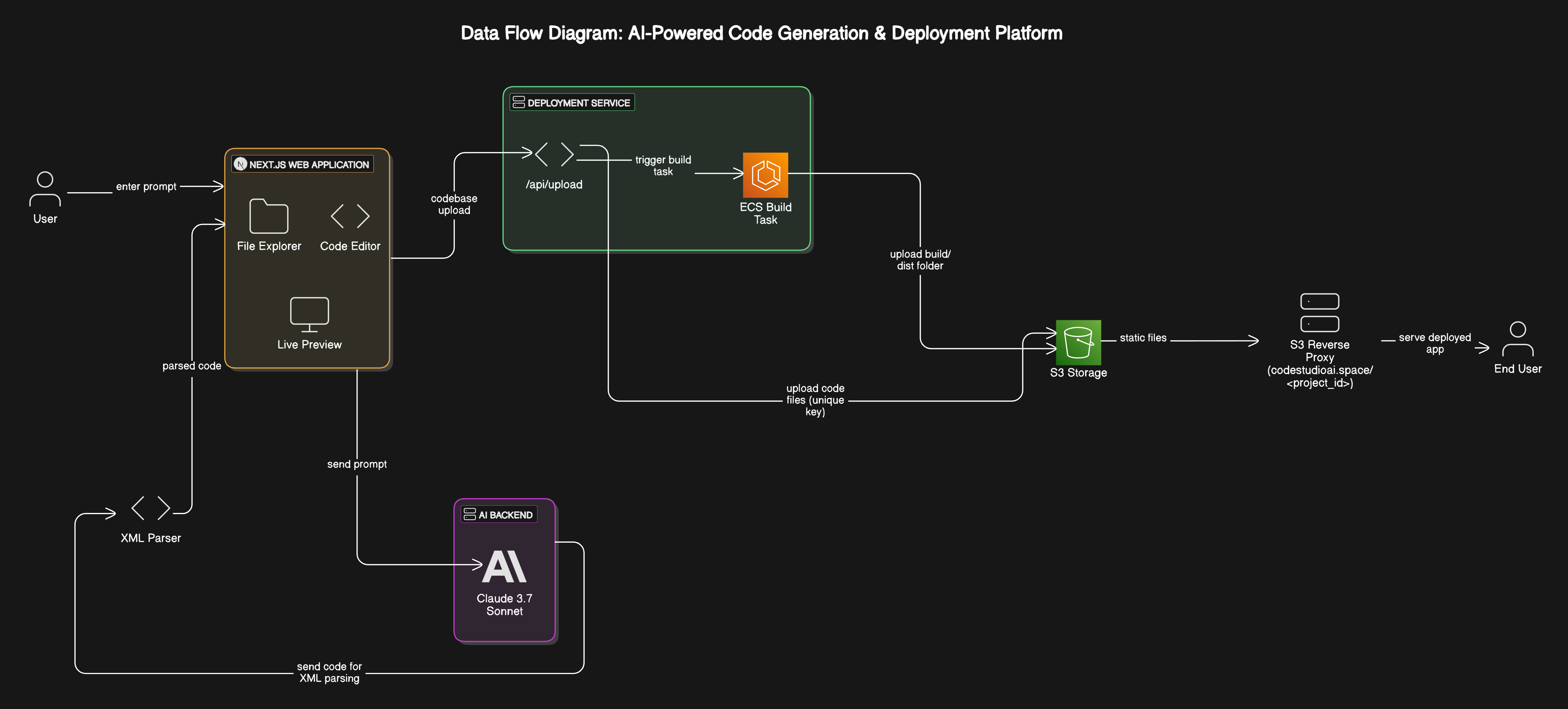 CodeStudio AI's comprehensive architecture illustrates our full deployment and integration workflow.